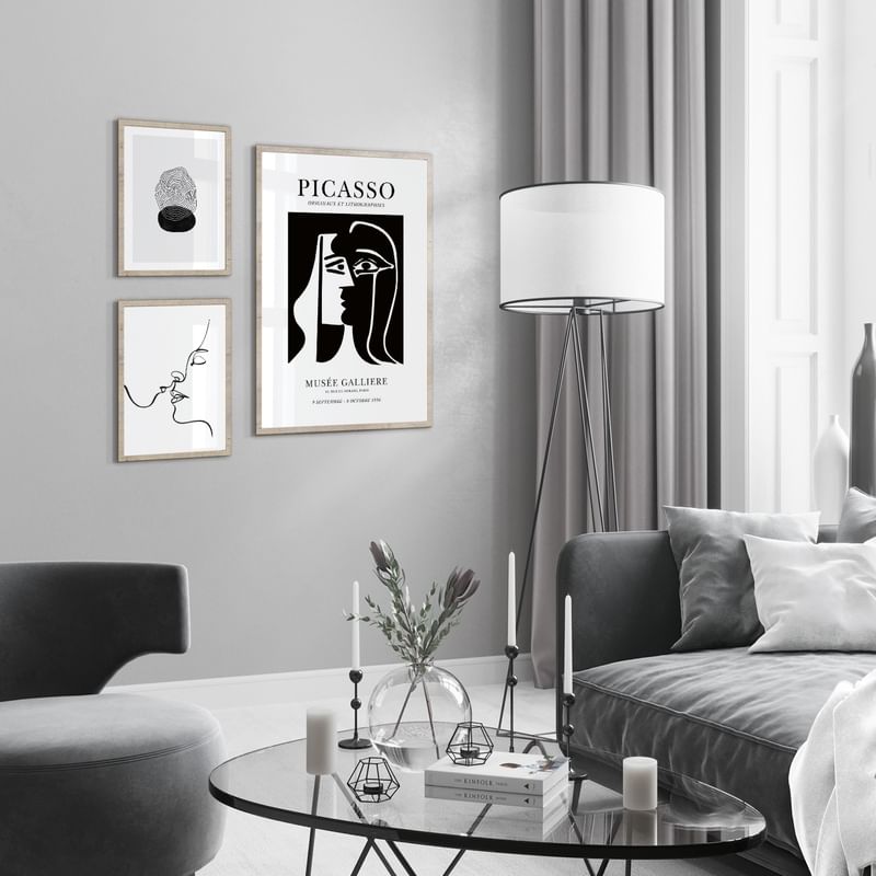 Prendi ispirazione per una galleria a parete per la soggiorno. In questa pagina abbiamo raccolto i nostri collage di foto per la soggiorno. Ordina per colore della parete o numero di poster e acquista l'intera parete con quadri o scegli i poster e le cornici che più ti piacciono.