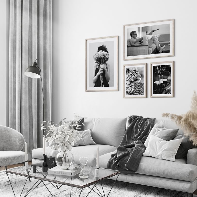 Prendi ispirazione per una galleria a parete per la soggiorno. In questa pagina abbiamo raccolto i nostri collage di foto per la soggiorno. Ordina per colore della parete o numero di poster e acquista l'intera parete con quadri o scegli i poster e le cornici che più ti piacciono.