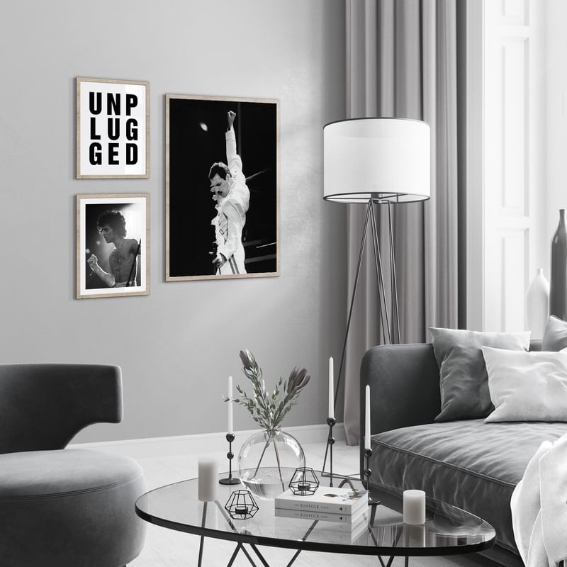 Prendi ispirazione per una galleria a parete per la soggiorno. In questa pagina abbiamo raccolto i nostri collage di foto per la soggiorno. Ordina per colore della parete o numero di poster e acquista l'intera parete con quadri o scegli i poster e le cornici che più ti piacciono.