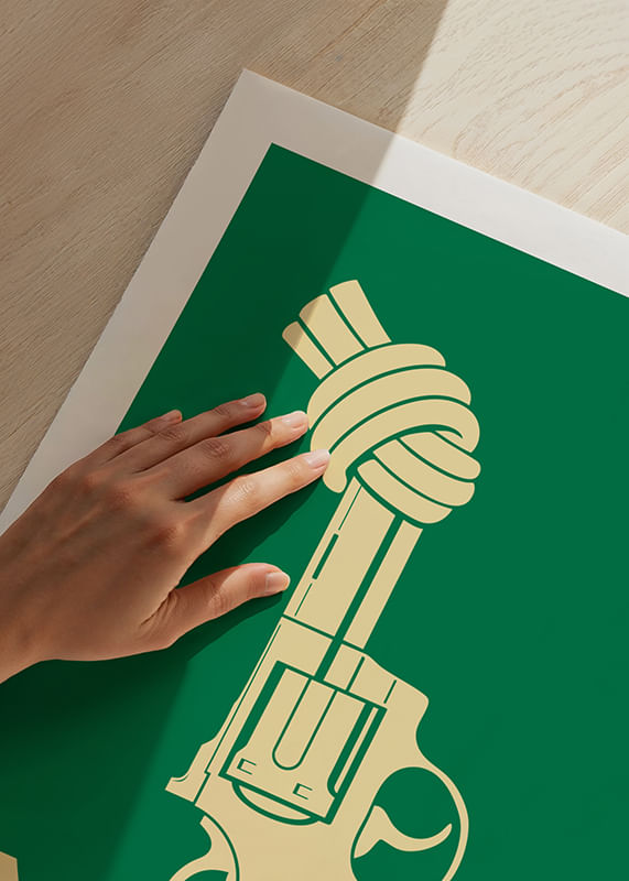 Non-Violence Vintage Green Edition è una reinterpretazione moderna di un’icona – un elegante omaggio al messaggio universale della non violenza. Ispirata al design classico dei poster, la celebre pistola annodata di Carl Fredrik Reuterswärd si unisce a una grafica essenziale in tonalità vintage. Disponibile in quattro colori – verde, giallo, rosso e blu – ogni versione porta lo stesso potente messaggio: vogliamo vivere in un mondo senza violenza. Il design minimalista si adatta perfettamente sia agli ambienti moderni che agli spazi creativi. Questo poster fa parte della Non-Violence Collection, e ogni acquisto sostiene il lavoro fondamentale di The Non-Violence Project nella prevenzione della violenza.