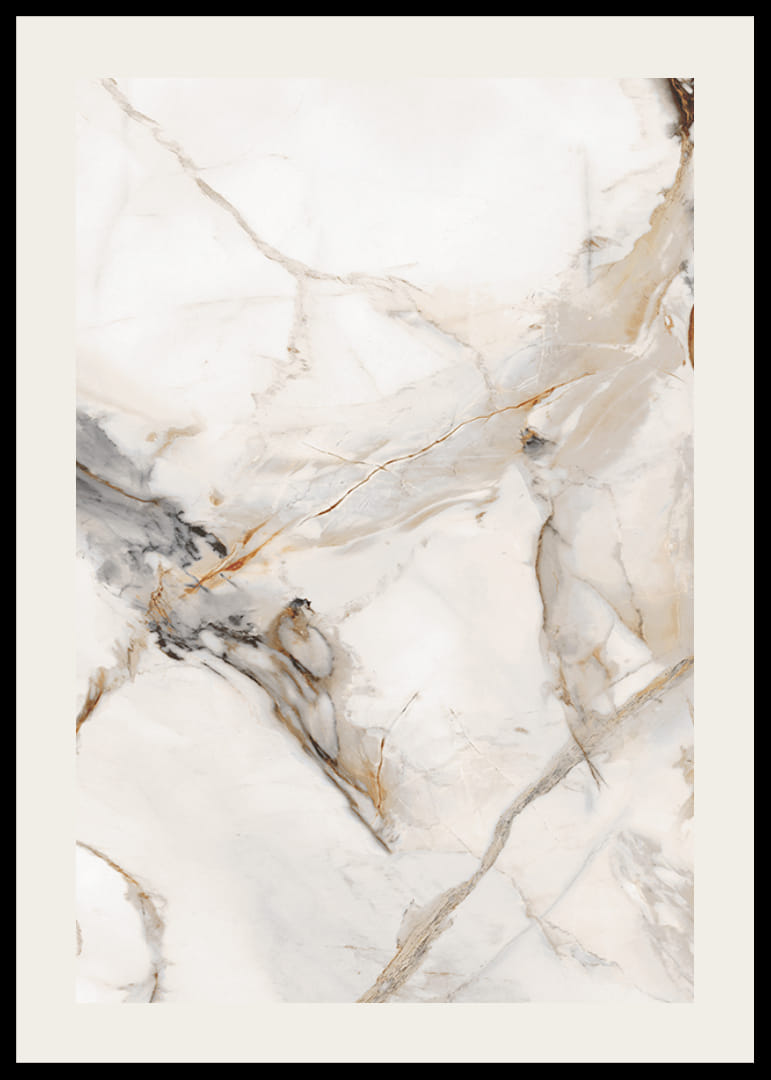 Il motivo è una texture marmorea varia, con venature grigie, beige e dorate su uno sfondo chiaro. Le linee naturali e le transizioni morbide conferiscono un'espressione senza tempo. Con il suo design astratto, questo poster si adatta sia alle case moderne che agli ambienti classici, dove si desidera un tocco discreto di materiali naturali.