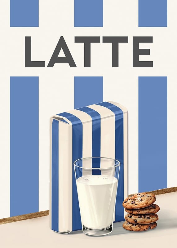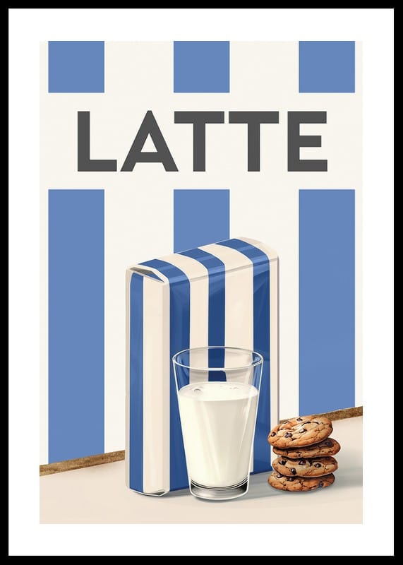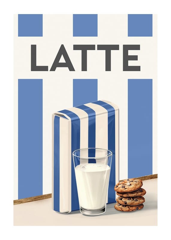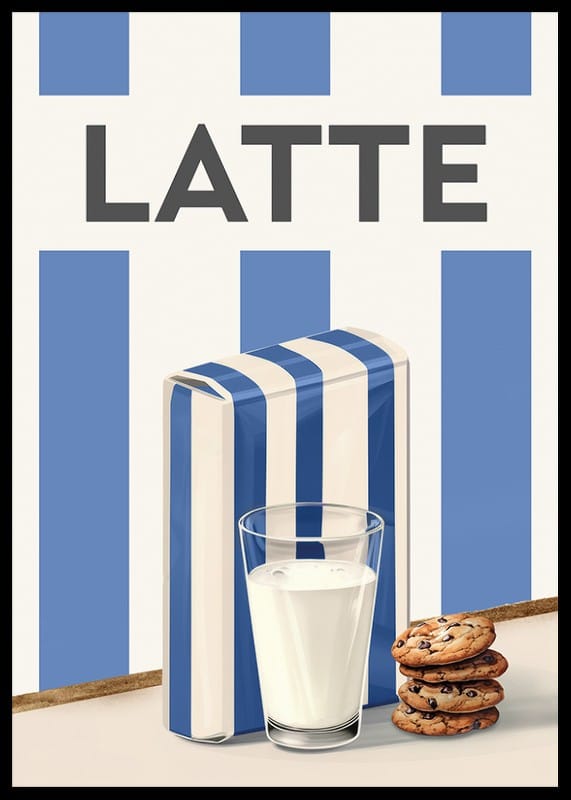 Scopri la semplicità scandinava e il fascino retrò con questo elegante poster raffigurante un dipinto ad acquerello raffigurante il latte. Questa illustrazione cattura l'atemporalità di un bicchiere di latte freddo, servito con biscotti con gocce di cioccolato, accanto a un cartone di latte decorato con le classiche strisce blu e bianche. Il design minimalista e la tavolozza di colori armoniosa rendono questo poster un dettaglio perfetto in cucina o in sala da pranzo. Un omaggio ai piaceri quotidiani, che trasmette la sensazione di familiarità e di bei momenti.