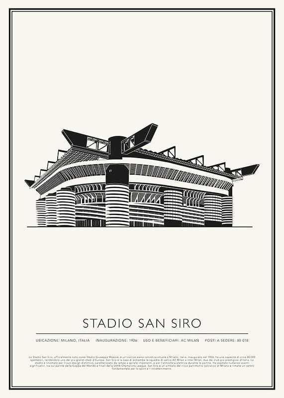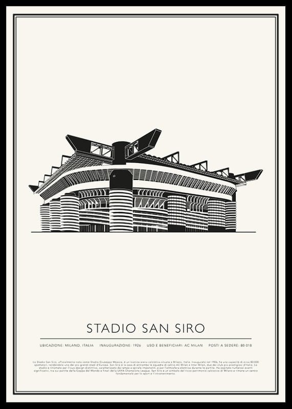 Lo Stadio San Siro, ufficialmente noto come Stadio Giuseppe Meazza, è un'iconica arena calcistica situata a Milano, Italia. Inaugurato nel 1926, ha una capacità di circa 80.000 spettatori, rendendolo uno dei più grandi stadi d'Europa. San Siro è la casa di entrambe le squadre di calcio AC Milan e Inter Milan, due dei club più prestigiosi d'Italia. Lo stadio è rinomato per il suo design distintivo, caratterizzato da rampe a spirale imponenti, e per l'atmosfera elettrica durante le partite. Ha ospitato numerosi eventi significativi, tra cui partite della Coppa del Mondo e finali della UEFA Champions League. San Siro è un simbolo del ricco patrimonio calcistico di Milano e rimane un centro fondamentale per lo sport e l'intrattenimento.