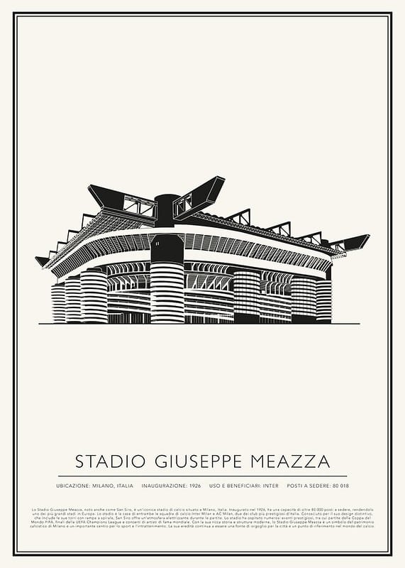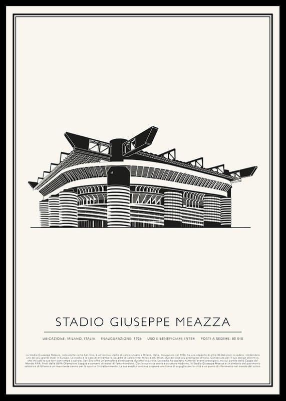 Lo Stadio Giuseppe Meazza, noto anche come San Siro, è un'iconica stadio di calcio situato a Milano, Italia. Inaugurato nel 1926, ha una capacità di oltre 80.000 posti a sedere, rendendolo uno dei più grandi stadi in Europa. Lo stadio è la casa di entrambe le squadre di calcio Inter Milan e AC Milan, due dei club più prestigiosi d'Italia. Conosciuto per il suo design distintivo, che include le sue torri con rampe a spirale, San Siro offre un'atmosfera elettrizzante durante le partite. Lo stadio ha ospitato numerosi eventi prestigiosi, tra cui partite della Coppa del Mondo FIFA, finali della UEFA Champions League e concerti di artisti di fama mondiale. Con la sua ricca storia e strutture moderne, lo Stadio Giuseppe Meazza è un simbolo del patrimonio calcistico di Milano e un importante centro per lo sport e l'intrattenimento. La sua eredità continua a essere una fonte di orgoglio per la città e un punto di riferimento nel mondo del calcio.