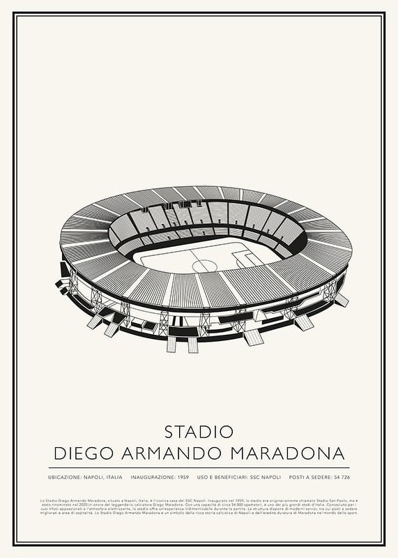 Lo Stadio Diego Armando Maradona, situato a Napoli, Italia, è l'iconica casa del SSC Napoli. Inaugurato nel 1959, lo stadio era originariamente chiamato Stadio San Paolo, ma è stato rinominato nel 2020 in onore del leggendario calciatore Diego Maradona. Con una capacità di circa 54.000 spettatori, è uno dei più grandi stadi d'Italia. Conosciuto per i suoi tifosi appassionati e l'atmosfera elettrizzante, lo stadio offre un'esperienza indimenticabile durante le partite. La struttura dispone di moderni servizi, tra cui posti a sedere migliorati e aree di ospitalità. Lo Stadio Diego Armando Maradona è un simbolo della ricca storia calcistica di Napoli e dell'eredità duratura di Maradona nel mondo dello sport.