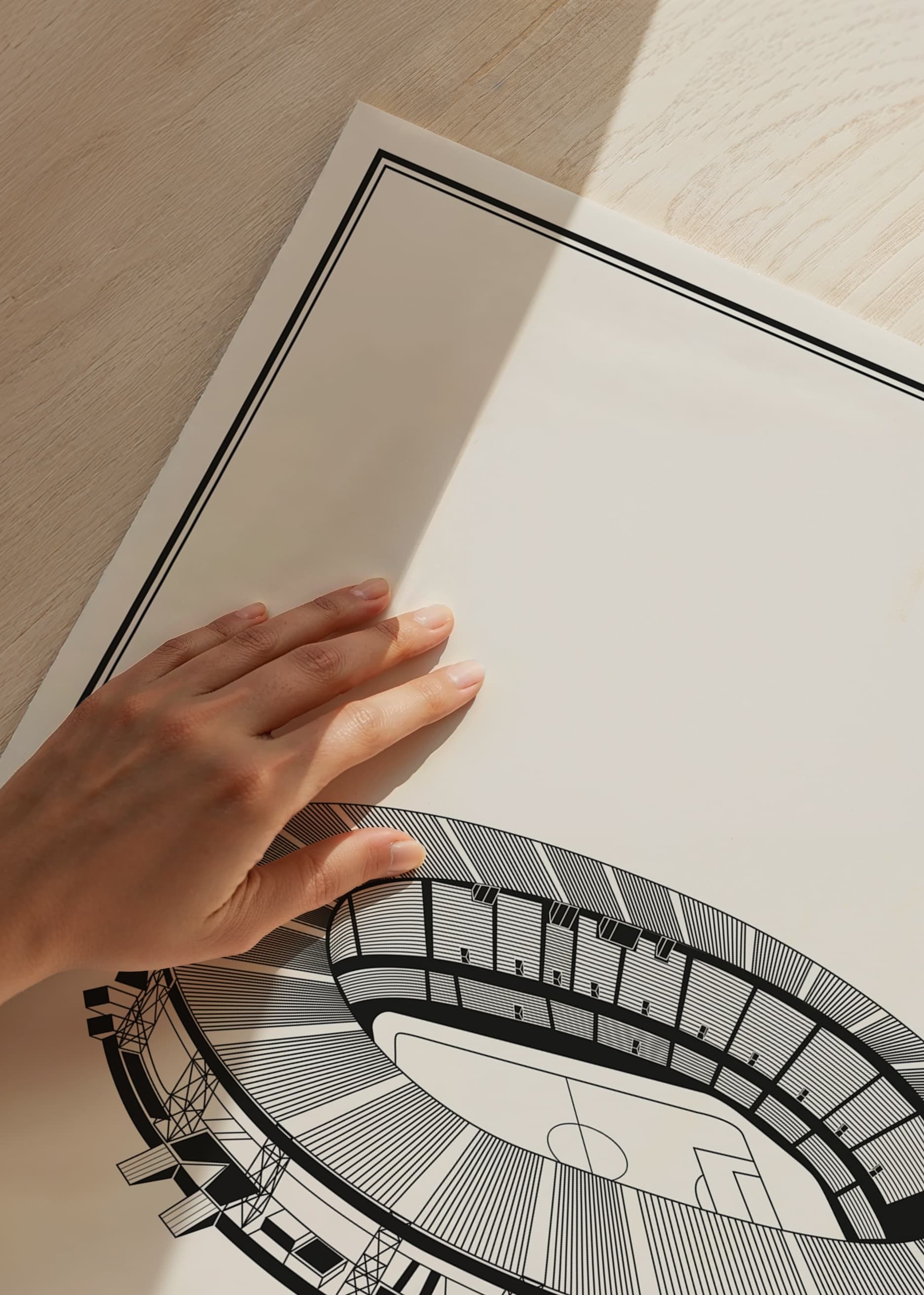 Stampiamo i nostri poster su carta semi opaca da 200 grammi della più alta qualità dalla fabbrica francese Clairefontaine. La carta è certificata FSC e la nostra produzione è certificata con marchio ecologico per garantire la sostenibilità della produzione.