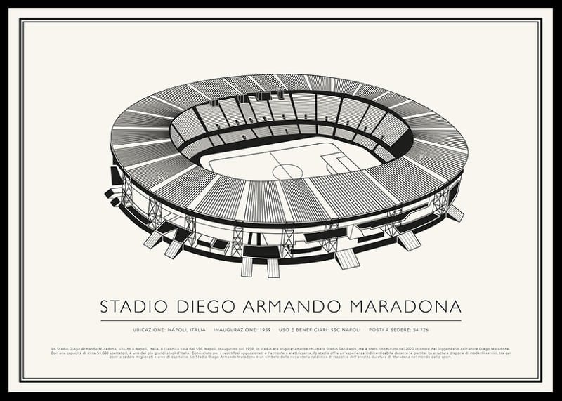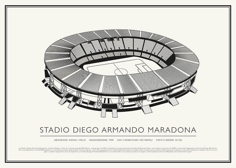 Lo Stadio Diego Armando Maradona, situato a Napoli, Italia, è l'iconica casa del SSC Napoli. Inaugurato nel 1959, lo stadio era originariamente chiamato Stadio San Paolo, ma è stato rinominato nel 2020 in onore del leggendario calciatore Diego Maradona. Con una capacità di circa 54.000 spettatori, è uno dei più grandi stadi d'Italia. Conosciuto per i suoi tifosi appassionati e l'atmosfera elettrizzante, lo stadio offre un'esperienza indimenticabile durante le partite. La struttura dispone di moderni servizi, tra cui posti a sedere migliorati e aree di ospitalità. Lo Stadio Diego Armando Maradona è un simbolo della ricca storia calcistica di Napoli e dell'eredità duratura di Maradona nel mondo dello sport.