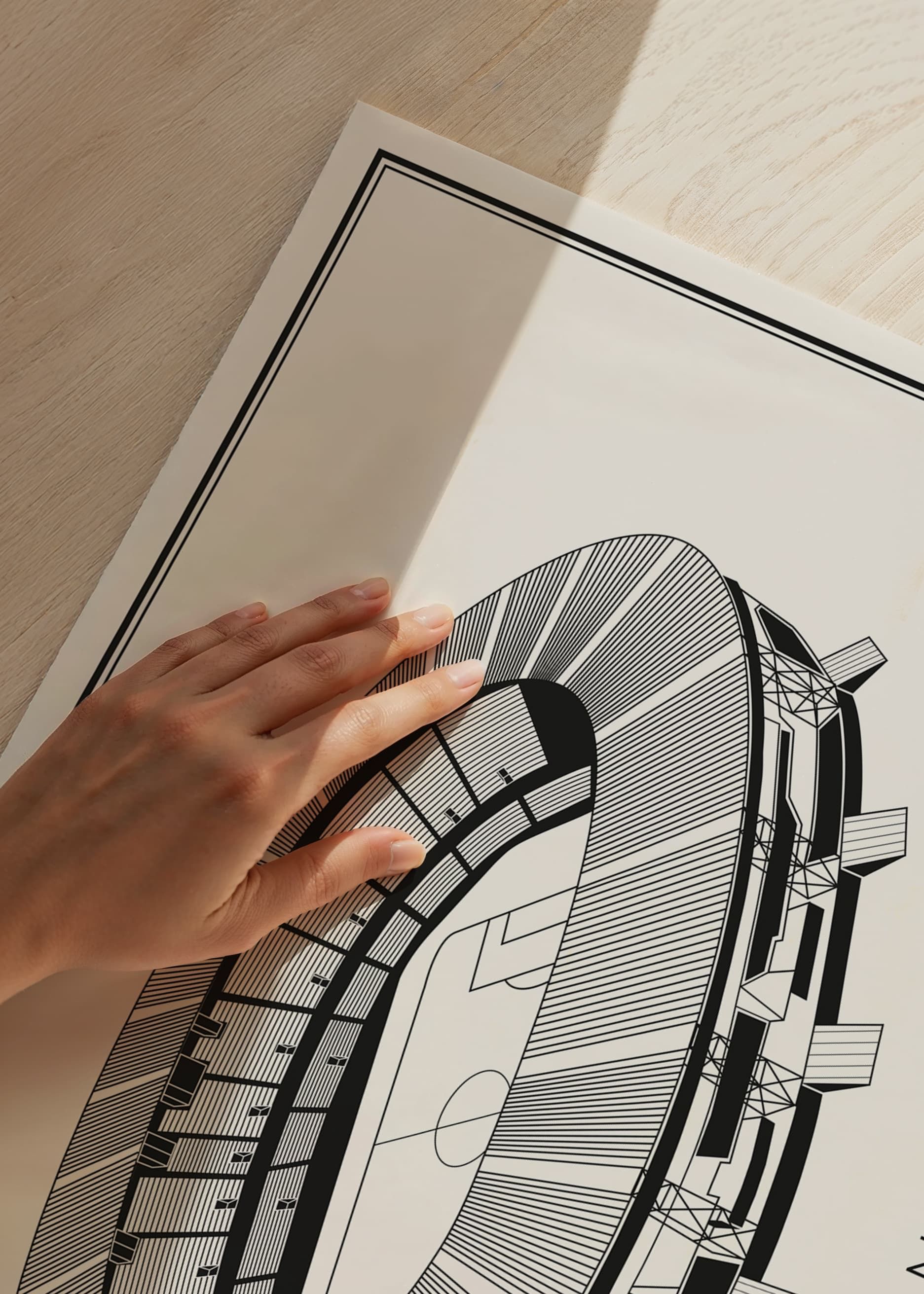 Stampiamo i nostri poster su carta semi opaca da 200 grammi della più alta qualità dalla fabbrica francese Clairefontaine. La carta è certificata FSC e la nostra produzione è certificata con marchio ecologico per garantire la sostenibilità della produzione.