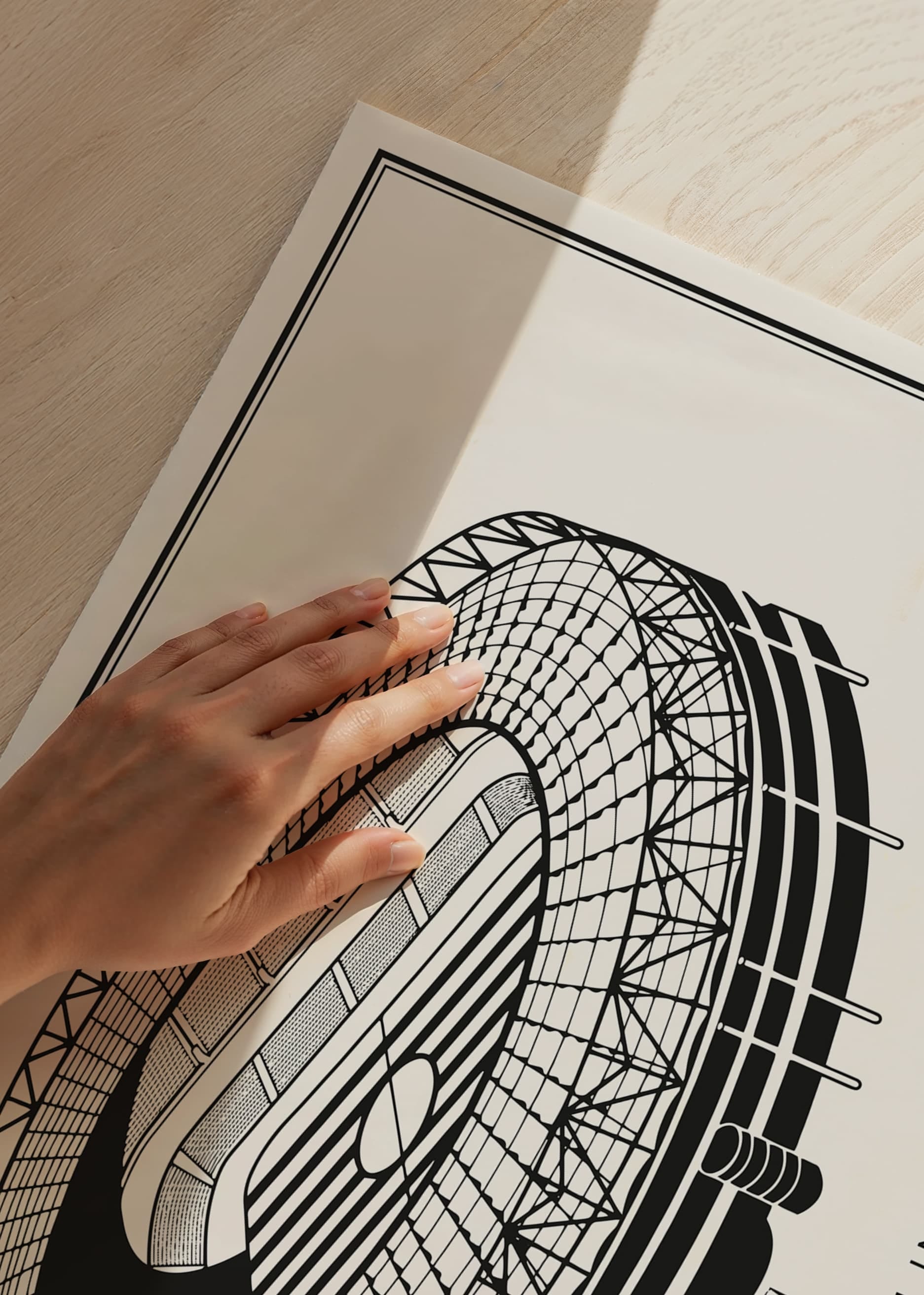 Stampiamo i nostri poster su carta semi opaca da 200 grammi della più alta qualità dalla fabbrica francese Clairefontaine. La carta è certificata FSC e la nostra produzione è certificata con marchio ecologico per garantire la sostenibilità della produzione.