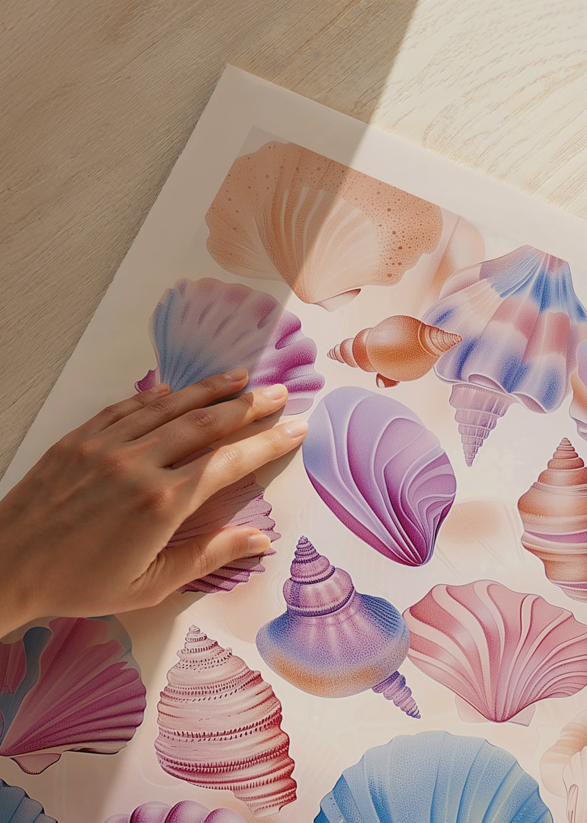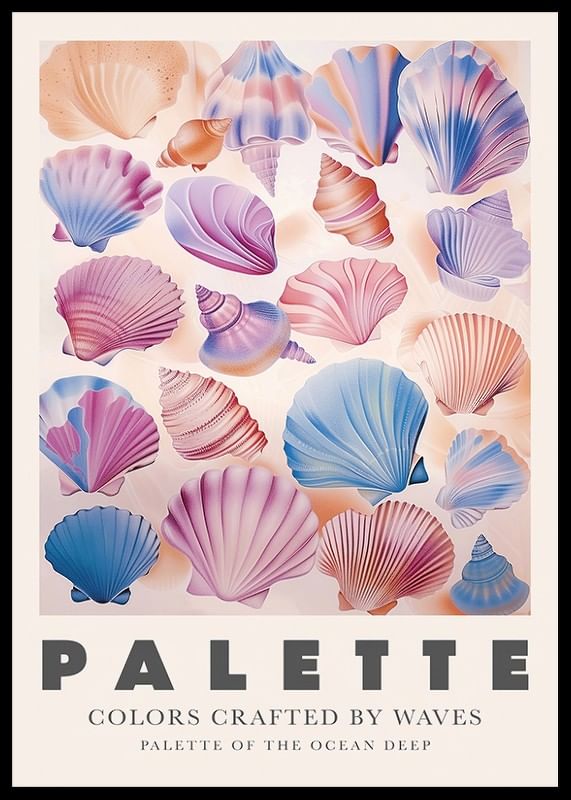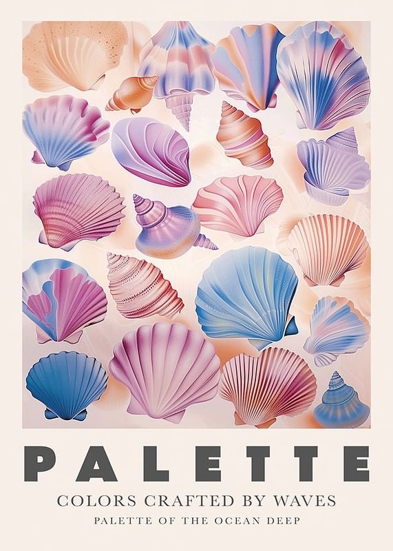 Scopri la magia del mare con questo splendido poster, in cui ogni conchiglia racconta una storia unica nei toni pastello. Ogni dettaglio è un omaggio all'opera d'arte della natura, creata dalle abili mani delle onde. Perfetto per conferire alla tua casa un senso di eleganza estiva e bellezza senza tempo.