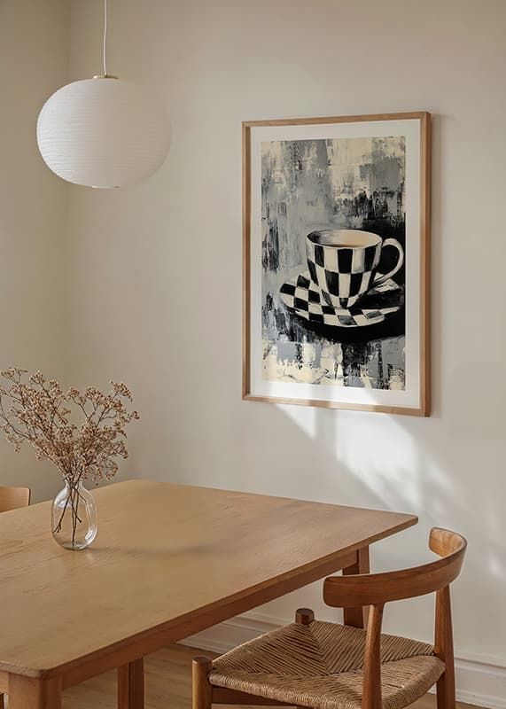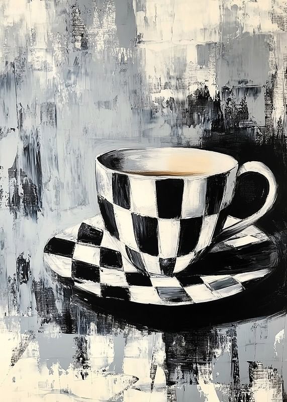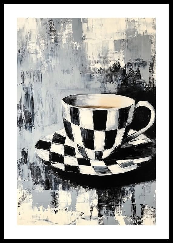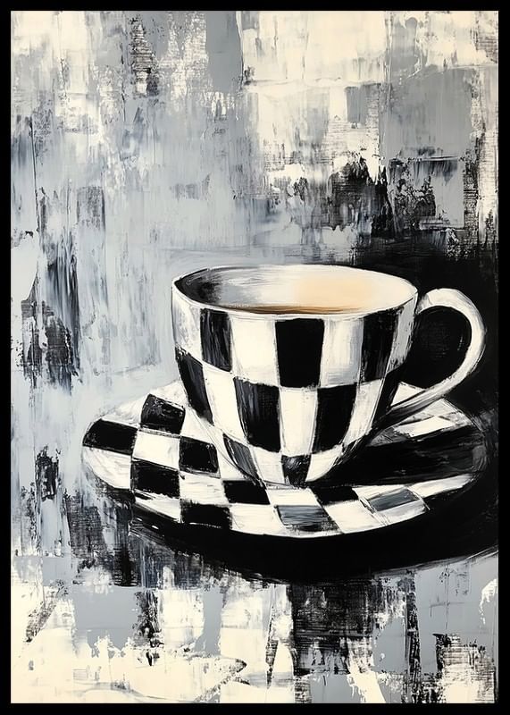 Questo poster cattura l'attenzione con il suo esclusivo motivo a scacchi, creando un affascinante contrasto con uno sfondo tenue. Ogni quadrato bianco e nero racconta la sua storia e trasmette una sensazione di silenziosa contemplazione.